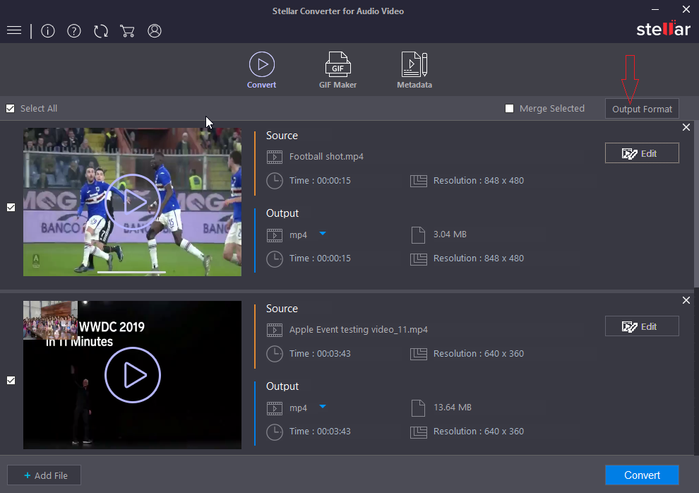 注意:您可以添加多个MP4文件进行转换。- 点击输出格式按钮在最右边。