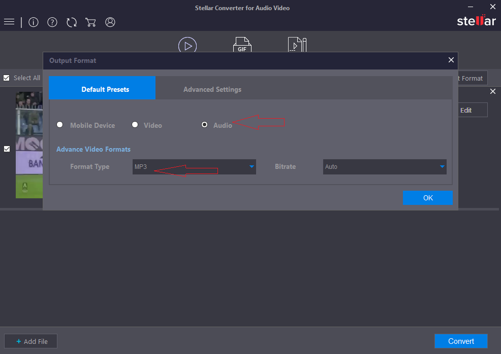 一个专业的MP4到MP3转换软件,音频视频恒星转换器,安全,快速转换MP4视频到MP3音频文件。此软件免费下载允许转换和保存初始三分之一(1/3)长度的音频/视频文件。您可以在各种音频播放器上播放转换后的音频录音,而不存在兼容性问题。