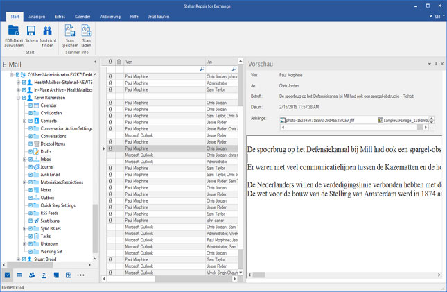 方法2:损坏Exchange-Postfächer mit恒星修复交换修复