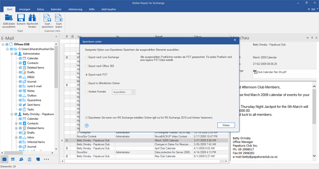 5.当Sie mit der Vorschau zufrieden sind, wählen Sie eine der mehrere Mailboxen aus, die wiederhergestellt werden sollen,并点击“Sie auf”。保存'.