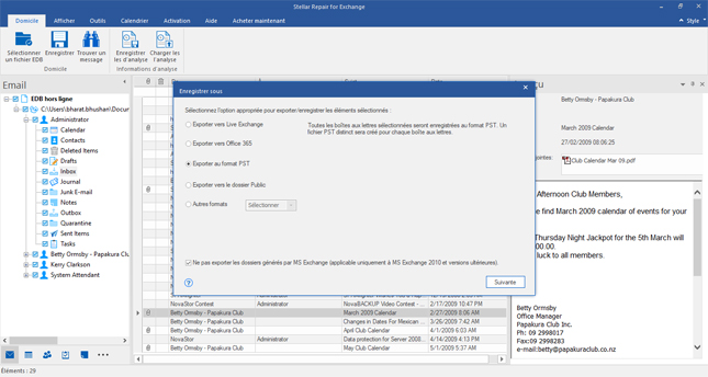 Tous les éléments de messagerie récupérés sont ensuite restaurés dans un nouveau fichier PST, qui peut être importé dans MS Outlook。Le logiciel vous assistant également à restaurrer les messageries supprimées ainsi que某些邮件supprimés。De plus, la dernière版本du logiciel vous permet également De récupérer des fichiers Unicode EDB。