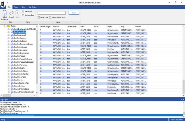 一旦扫描完成,该软件将提供对象的预览,可以转换为MySQL数据库格式。