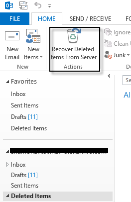 - 检查顶部菜单栏上是否选择了Home选项卡,并单击“从服务器恢复删除的项目”选项。