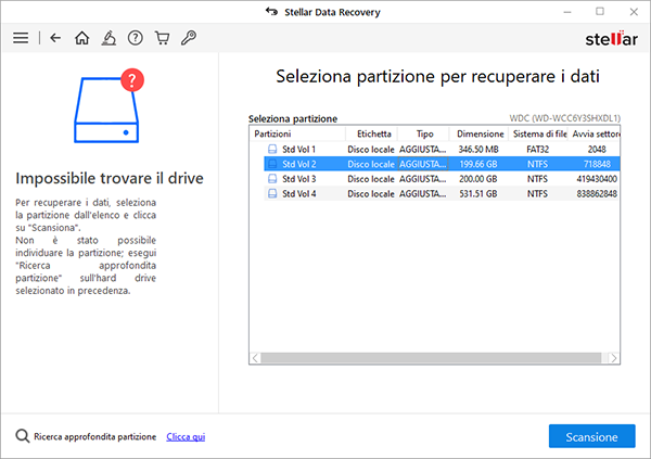 Stellar Data Recovery/5. Lavorare con il software/5.4. Recupero di una partizione persa
