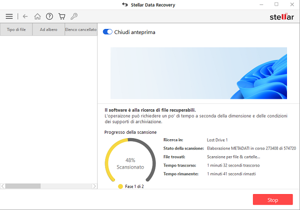 Dalla schermataSeleziona cosa recuperare, seleziona将tipo di dati,我将在这里恢复健康全体的,Documenti,Cartellee电子邮件o文件multimediali。