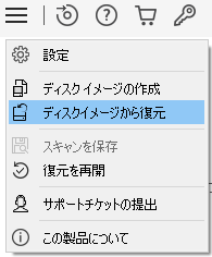 新しく作成されたディスクイメージや以前に作成されたディスクイメージからデータを復元するには、メニューボタンからこのオプションを選択します。 |