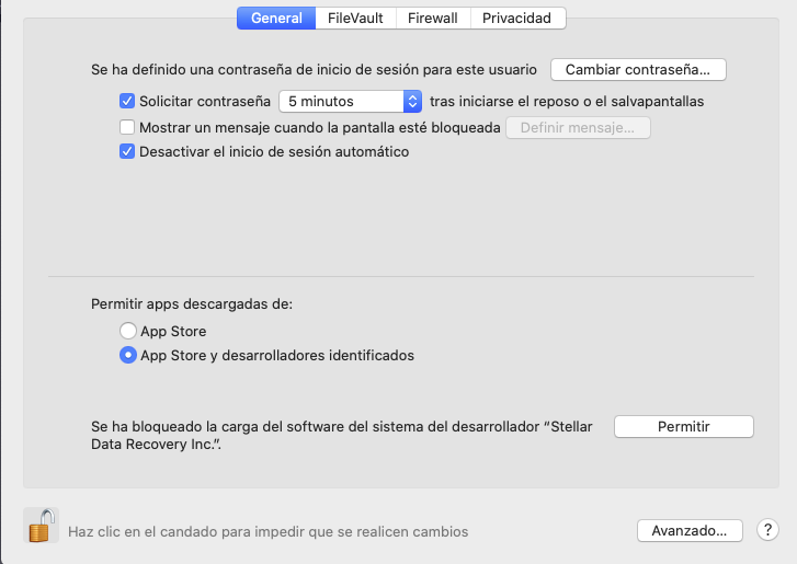 14. PulsarPermitir, habilitando a macOS cargar la extensión firmada por “Stellar Data Recovery”.